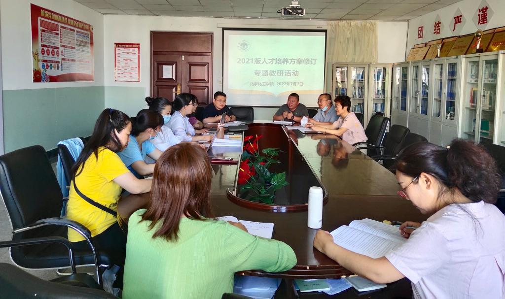 为进一步修订完善2021版人才培养方案,提高人才培养质量,适应社会发展需求,7月7日上午,化学化工公司在科技楼422会议室召开2021版人才培养方案修订专题研讨会。会议就化学、应用化学、化学工程与工艺三个本科专业课程与毕业要求的支撑关系进行了深入研讨。全体专任教师参会,会议由副经理毕瑞金主持。
