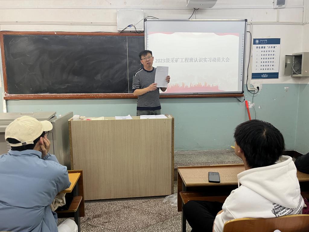 按照人才培养方案及实习计划任务要求,2023级采矿工程专业员工将在教学周第15至16周赴扎赉诺尔煤业公司开展为期两周的认识实习活动。动员会上,乔燕珍深入阐释了本次实习的目的与意义,她要求此次实习过程中同学们要将理论知识与实际生产中的各个环节相联系,将书本知识具象化,实习中多观察、多思考、多问询,切实增强采矿工程的感性认识,培养劳动意识、安全意识、团结协作精神、吃苦耐劳精神,为后续专业课程的学习奠定实践基础。