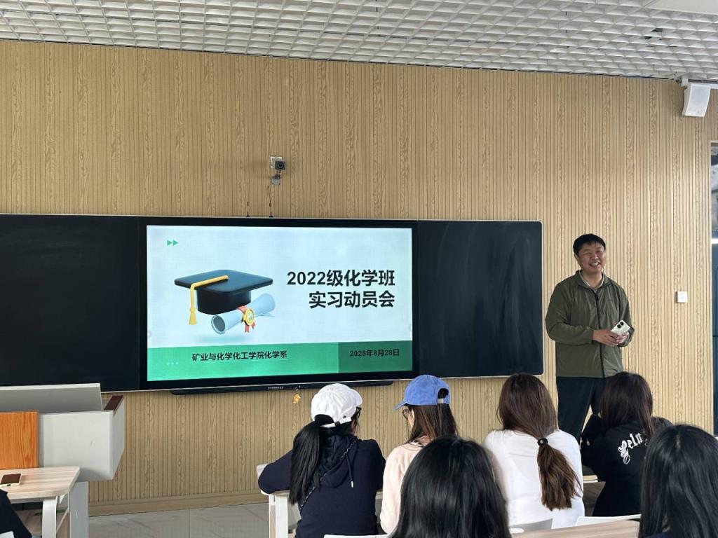 会上,敖日格乐强调了化学专业教育实习的重要性,实习全过程中的安全问题。他指出,教育实习是师范生从理论到实践的关键蜕变,能提升教学能力、养成师者素养,并着重围绕实习安排、实习岗位要求、实习安全规范等核心内容展开讲解,希望大家以严谨的态度对待每一堂课,以耐心的姿态关爱每一位员工,以高效的规划平衡实习与考研,在实践中锤炼教学本领,为未来成为一名优秀的化学教师积蓄力量。齐霞从实习心态调整、职业素养培养等方面补充发言,鼓励同学们珍惜实习机会,将课堂所学与实践相结合,以积极态度投入实习工作。