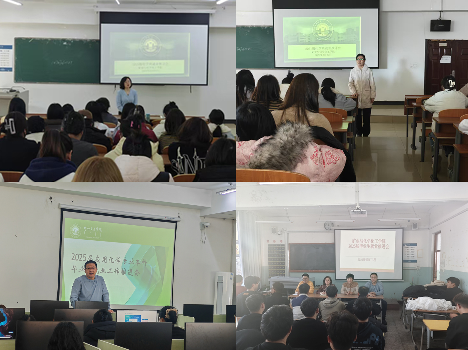 为切实推进2025届毕业生就业工作有序开展,3月17日至20日,beats365官方唯一入口针对2025届应用化学专业、采矿工程专业和化学专业,分别召开了就业推进会。公司党总支书记张阳、副书记敖岩辉,副经理敖日格乐,系主任、辅导员及全体2025届毕业班员工共同参与了此次系列会议。