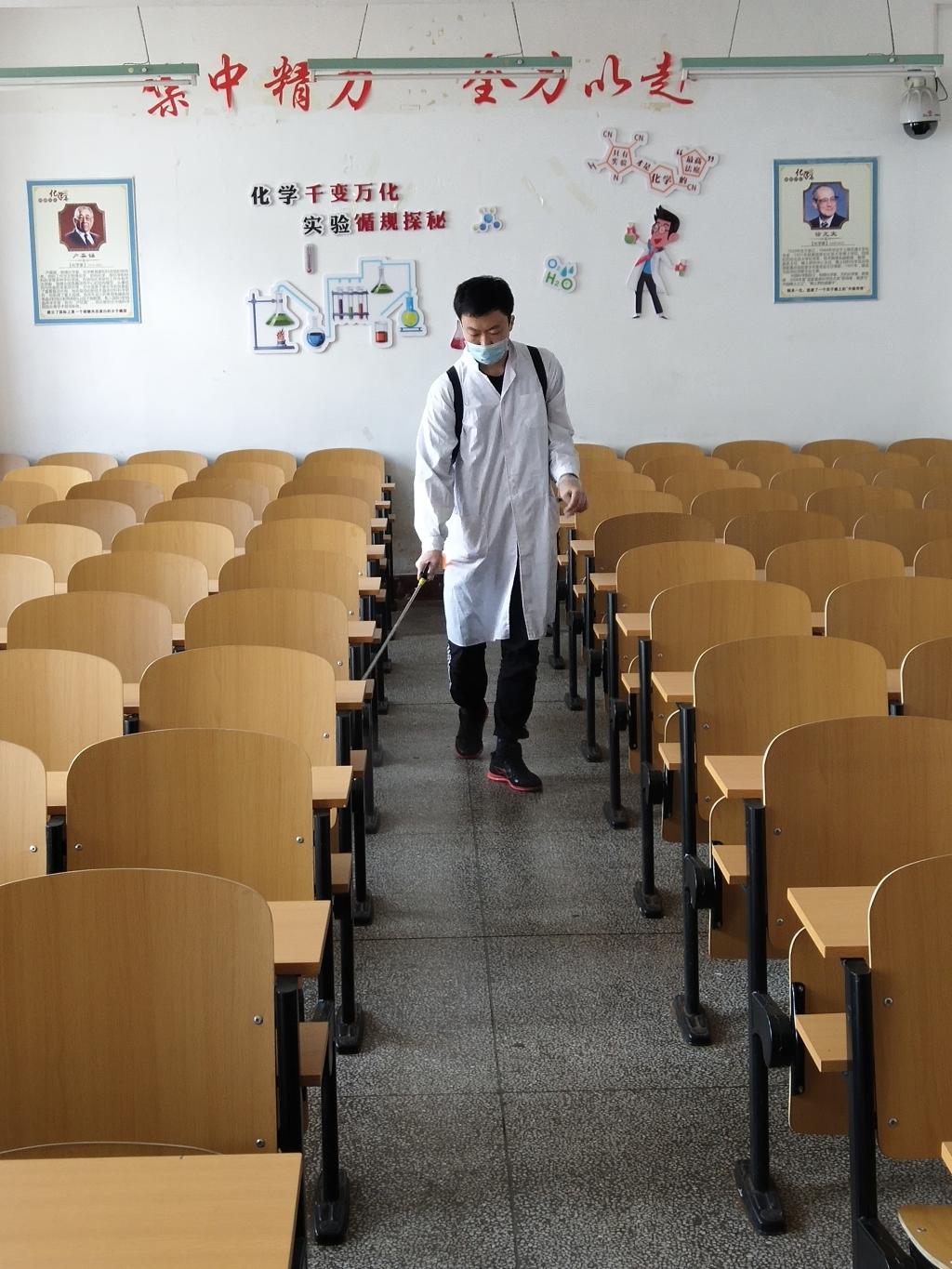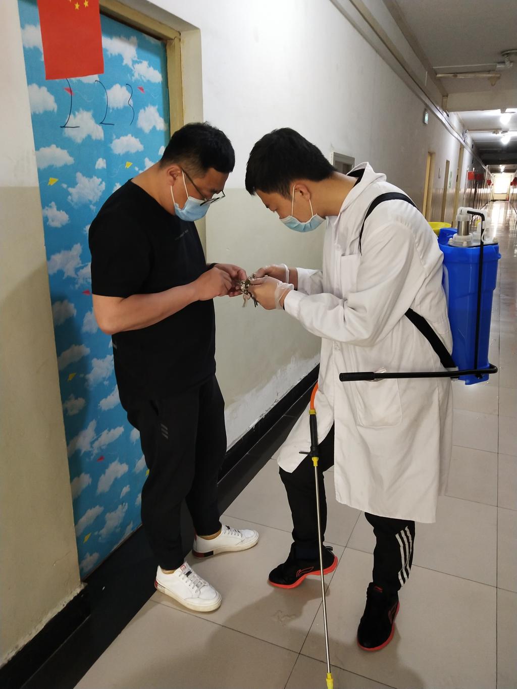 为了让返校毕业生在宿舍住得安全和放心,力求防疫细节落实到位,在员工返校前,党总支副书记刘朋亲自带领团学办公室主任张一帆、辅导员孟庆永对员工宿舍教室、公司办公区进行了全面的消毒杀菌师生开学复课提供可靠的安全保障。