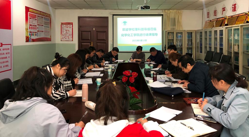 5月12日上午,化学化工公司在科技楼422会议室开展教师“说课”活动。公司理科督导组胡秋莉教授、田文武教授、王贵文教授进行说课指导。化学化工公司领导班子及全体专任教师参加了此次说课活动。