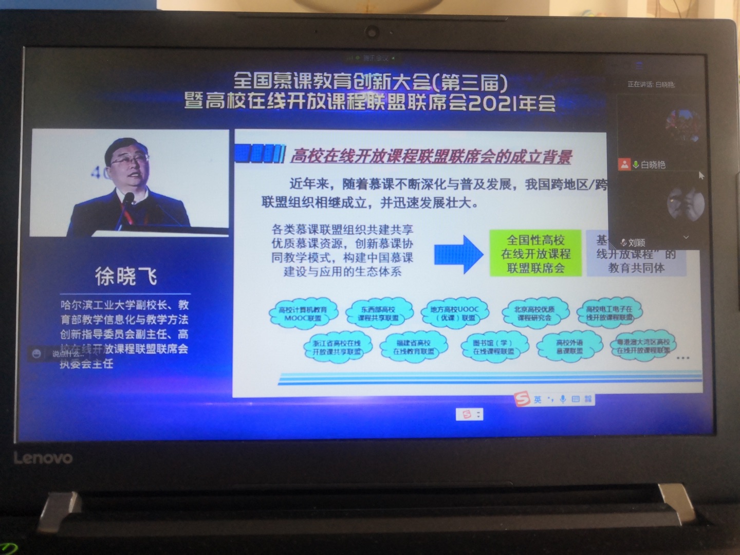 11月27日上午,化学化工公司组织教师线上参加了“全国慕课教育创新大会(第三届)暨高校在线开放课程联盟联席会2021年会”,此次年会由教育部高等公司教学信息化与教学方法创新指导委员会指导,高校在线开放课程联盟联席会主办,我国在线开放课程领域26个联盟和西安电子科技大学承办,年会主题为“新时代在线开放课程高质量发展”。