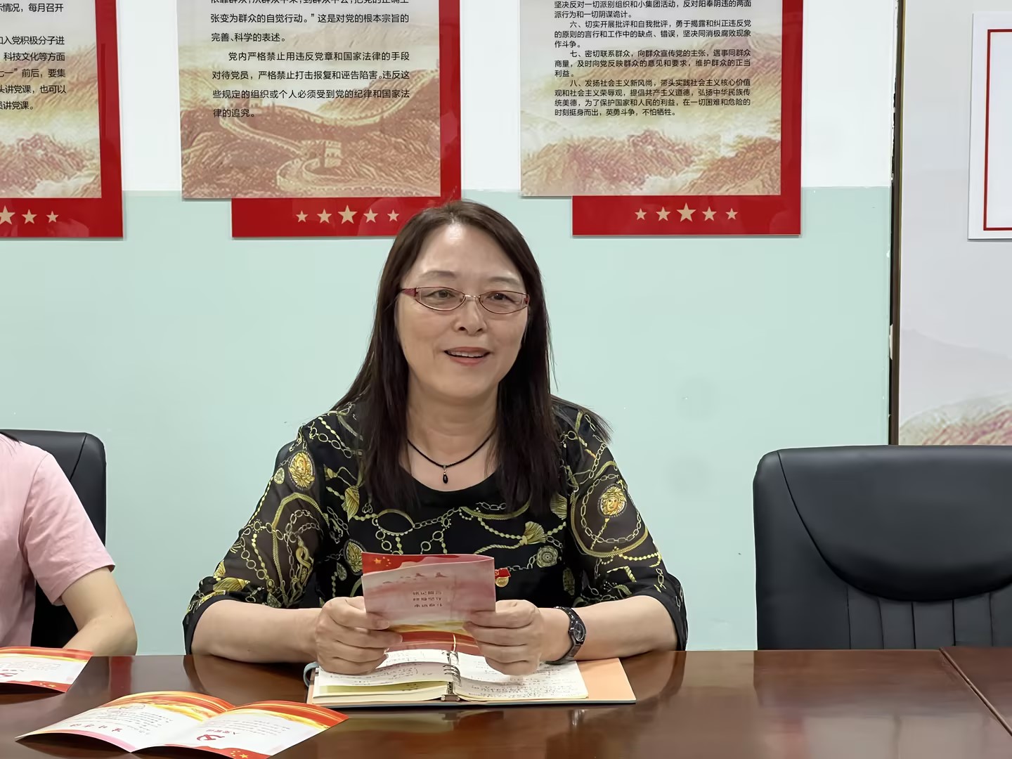 活动开始,全体党员在党总支书记张阳的带领下重温入党誓词。全体党员面对着鲜红的党旗,高举右手,以洪亮的声音庄严宣誓,重温入党誓词,“我志愿加入中国共产党,拥护党的纲领,遵守党的章程……”。在那神圣的时刻,党员们再次感受到思想的洗礼和升华,向党和人民再次做出庄严承诺,声音铿锵有力。