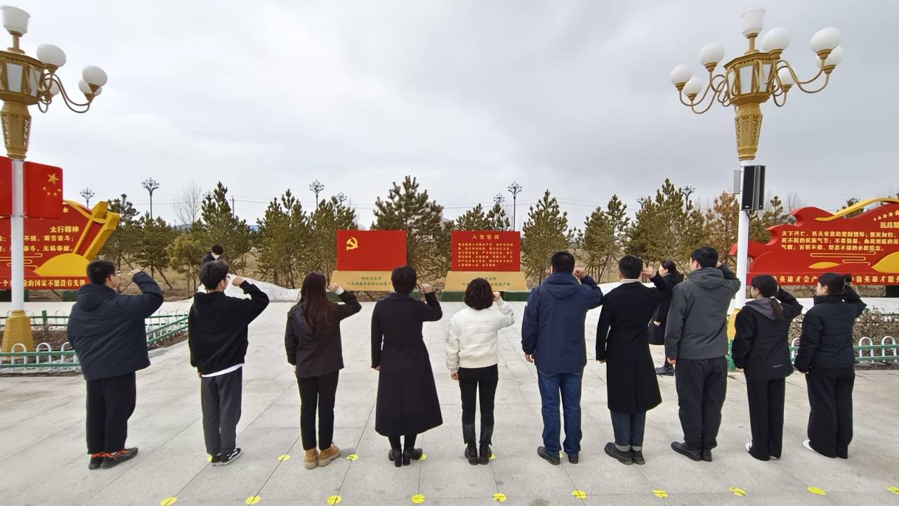 最后,教工党支部书记白春英庄重站定,引领全体党员面向鲜艳党旗,重温入党誓词。众人整齐高举右拳,身姿挺拔,神情满是肃穆与坚定。紧接着,一句句铿锵有力的誓言破口而出,在烈士纪念广场的上空久久回荡。这誓言,不单单是对入党初心的深情回溯,更是全体党员向使命担当许下的郑重承诺,彰显着他们矢志不渝的信念与决心。