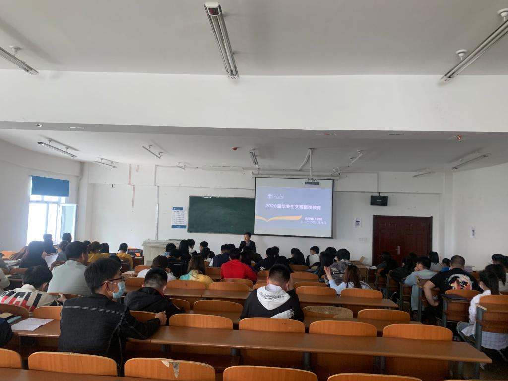 为加强对员工的管理与教育,营造一个有序、安全的文明离校氛围,让所有毕业生能够安全离校,保证全体同学都能以积极乐观的态度投入到接下来的学习和生活中,化学化工公司于6月8日15:30在科技楼223教室开展开展了2020届毕业生文明离校教育会议,党总支书记何平、副书记刘朋、团学办主任张一帆、团总支书记、2020届毕业生辅导员孟庆永和2020届返校的全体毕业生参加了本次会议。