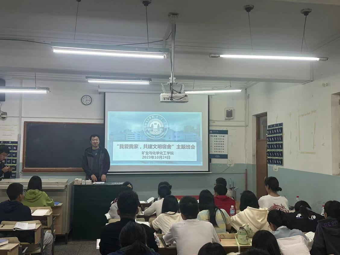 “我爱我家,共建文明宿舍”主题班会上,辅导员讲到建设文明宿舍应该做到以下几点:一是制定宿舍文明公约,培养规矩意识,强化纪律观念;二是养成良好的卫生习惯,认真仔细打扫宿舍卫生,勤通风,注意个人卫生,加强体育锻炼,增强个人体质;三是特别强调员工干部、党员要发挥模范带头作用,学习上鞭策舍友、生活上关心舍友,共同构建文明宿舍。