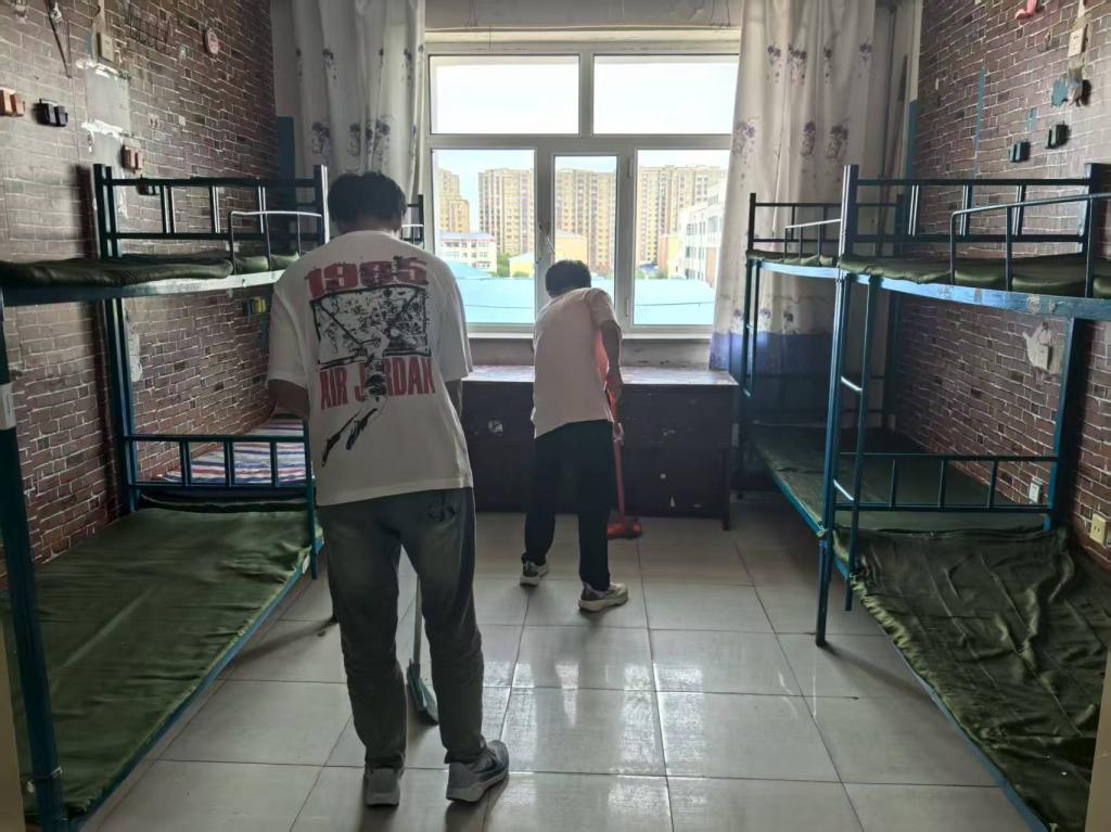 在活动中,志愿者们自备扫帚、抹布、消毒液等工具,以宿舍为单位分工协作,用细致的行动传递同辈温情。他们认真清扫地面,不放过任何卫生死角;仔细擦拭门窗玻璃,反复清洁柜体边角,用心整理床铺框架,将宿舍收拾得规整有序。经过志愿者们的热心劳动,原本空置的宿舍焕然一新——窗明几净,阳光洒落,每一细节都彰显着用心,为即将到来的2025级新生打造出舒适宜居的“校园小家”。