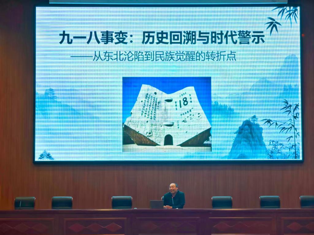 为引导2025级新生厚植家国情怀,树立正确历史观,9月16日,beats365官方唯一入口在图书馆四楼报告厅举办新生入学教育专题讲座,聚焦九一八事变历史展开深度学习。本次讲座由“银龄”宣讲团黄福令老师主讲,2025级全体新生参与。